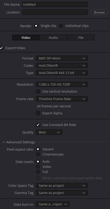These are the default setting you should use when exporting an AAF from your timeline in Premiere Pro: